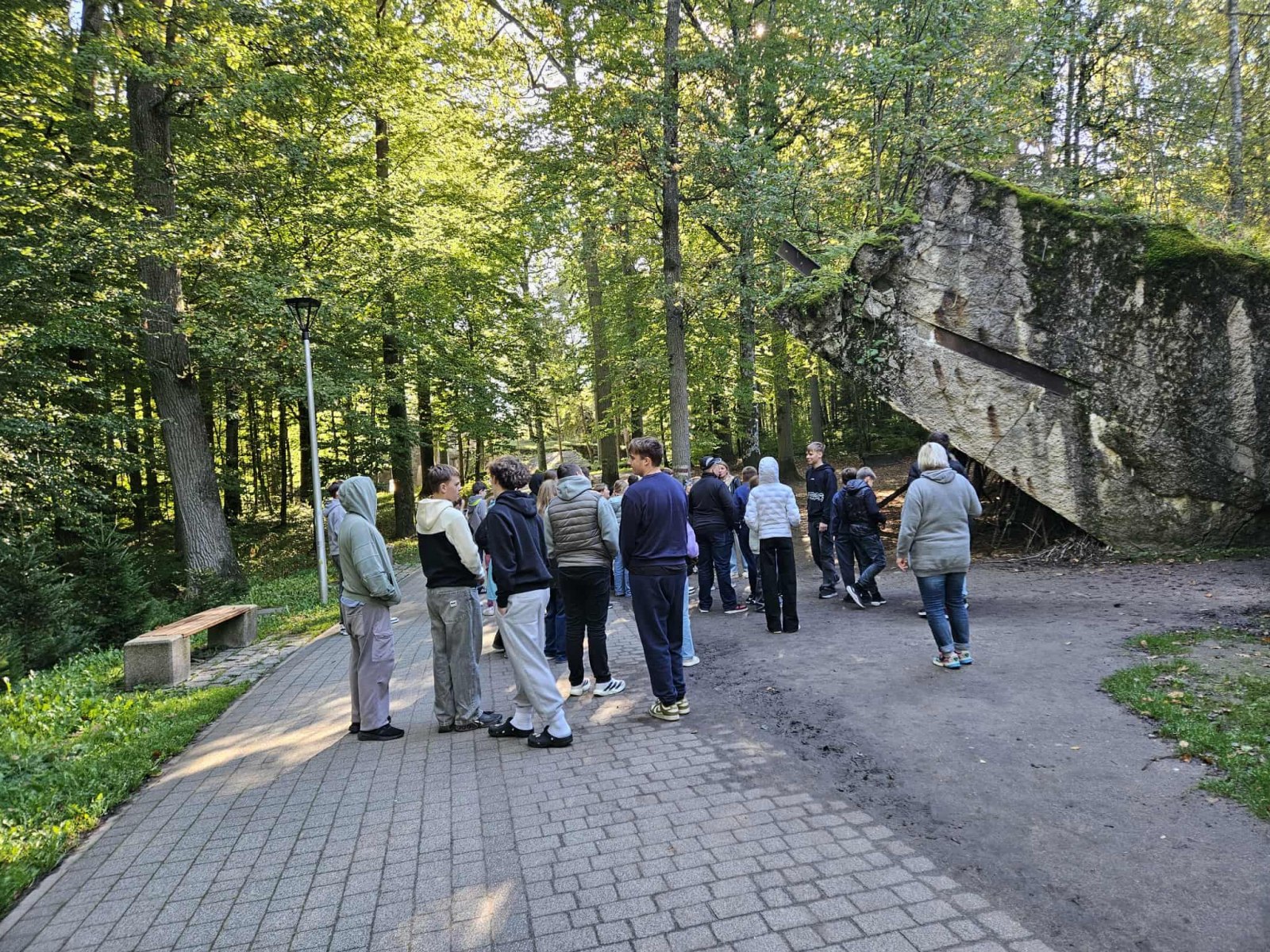 Ankstyvą rugsėjo 26 d. rytą jungtinė gimnazijos 5 – 8 kl. ir I g- III g klasių mokinių grupė kartu su lietuvių kalbos ir literatūros mokytoja Egle Chodiuškine ir istorijos mokytoja Edita Losevaite vyko į edukacinę, pažintinę kelionę, į Lenkiją, maršrutu: Vilko guolis – Šv. Lipka – Tropikana. Pirma aplankyta istorinė kelionės vieta buvo „Vilko guolis“ – Antrojo pasaulinio karo metu buvusi A. Hitlerio būstinė. Gierložo miške ši pagrindinė Hitlerio būstinė buvo pradėta statyti 1940 m. Būstinėje buvo įrengta elektrinė, geležinkelio stotis ir du aerodromai. Šiuo metu čia įkurtas muziejus, kuriame pamatėme po nacių atsitraukimo susprogdintų štabo bunkerių griuvėsius bei išlikusius buvusius įvairios paskirties pastatus. Toliau vykome į Šv. Lipką – barokinį vienuolyno ir bažnyčios ansamblį, garsėjantį „šokančiais” vargonais, kur skambant muzikai ant vargonų esančios figūrėlės pradeda judėti. Na, o pabaigoje vykome į Mikolaikas, kur galėjome atsipūsti po kelionės pasivaikščiojimų, Tropikanos vandens parką. Pilni įspūdžių, su nauja patirtimi grįžome vėlai vakare namo.