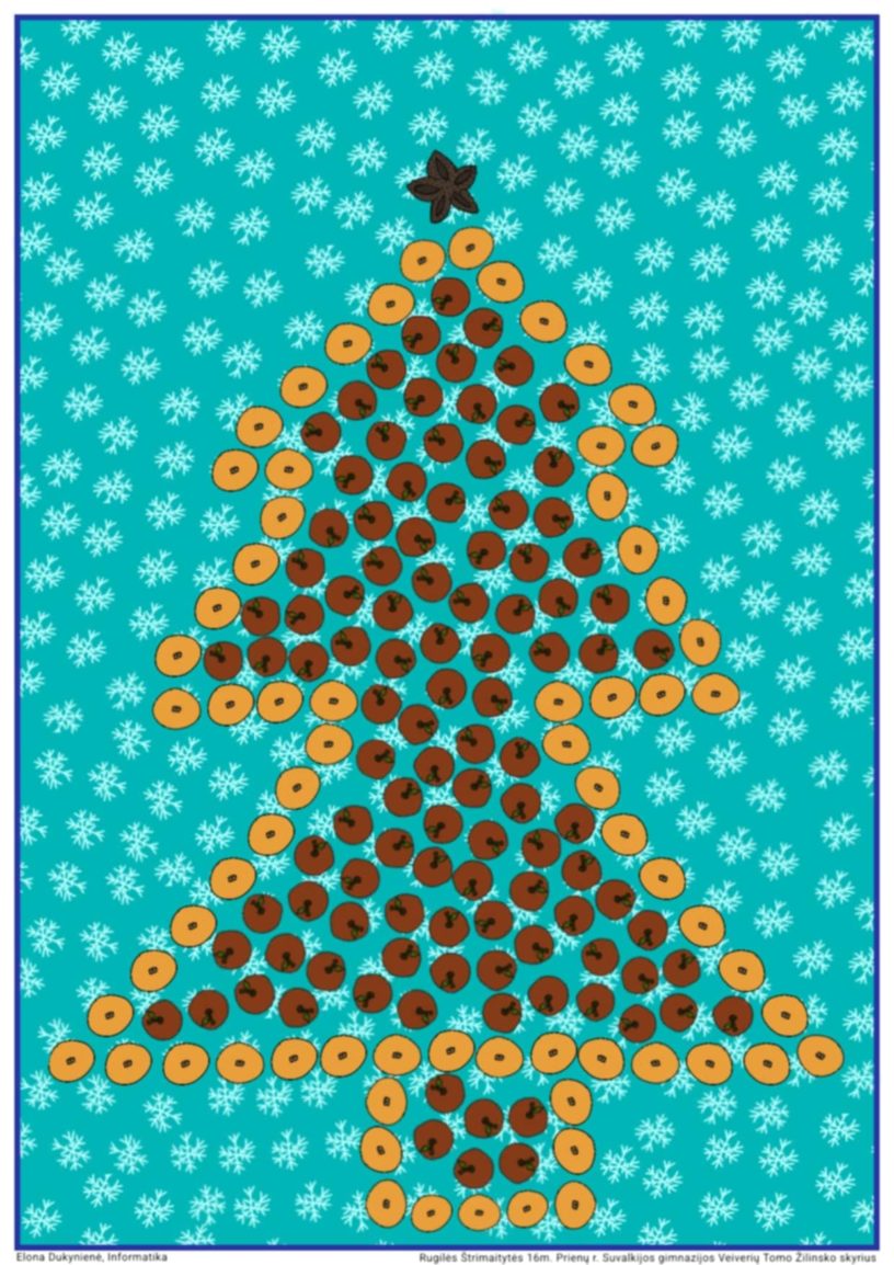 II g klasės mokinės Rugilė Štrimaitytė ir Viktorija Verseckaitė pristatė savo darbus Kalėdinio atviruko konkurse „Kompiuterinė Kalėdų pasaka“.
