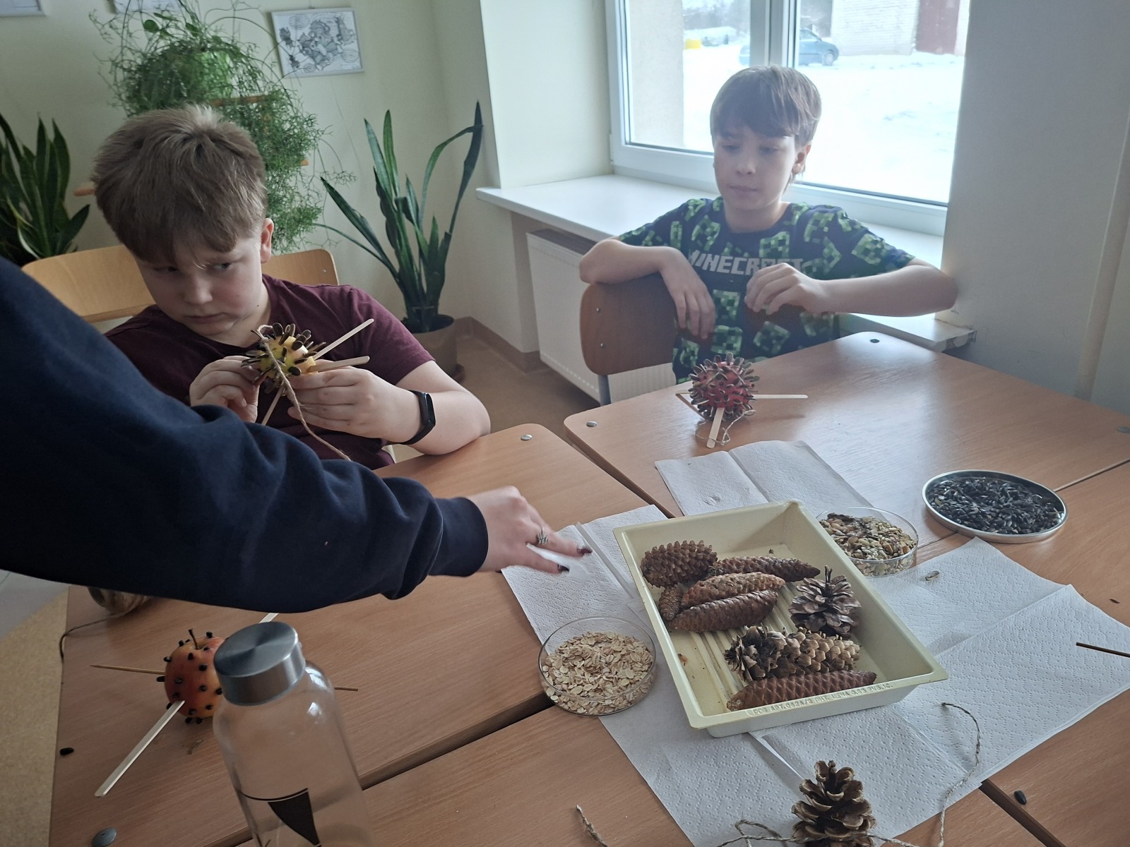 Sausio 15 dieną STEAM pamokoje vyko nuotolinis integruotas praktinis užsiėmimas jauniesiems miško bičiuliams, kurį vedė ornitologas lektorius Gediminas Petkus. Užsiėmime dalyvavo 4 ir 8 klasių mokiniai, kurie gilino žinias apie Lietuvoje žiemojančius paukščius, jų mitybą bei atsakingą lesinimą žiemos metu.Užsiėmimo metu mokiniai sužinojo, kodėl žiemą paukščiams ypač sunku rasti maisto ir kaip žmonės gali prisidėti prie jų išlikimo. Lektorius pabrėžė, kad labai svarbu paukščius lesinti tinkamai – naudoti nesūdytas sėklas, grūdus, lajų, vengti duonos, sūraus ar kepto maisto. Praktinėje veiklos dalyje mokiniai pasigamino lesyklėles paukščiams iš gamtinių žaliavų. Naudodami kankorėžius, obuolius, įvairias sėklas, taukus bei kitus riebalus, mokiniai kūrė lesyklėles, kurias pakabinti mokyklos kieme. Tokios veiklos ugdo mokinių atsakomybę, ekologinį sąmoningumą ir meilę gamtai, skatina rūpintis silpnesniais bei pastebėti gamtos pokyčius skirtingais metų laikais. Džiaugiamės prasmingu užsiėmimu bei tikimės, kad pagamintos lesyklėlės padės paukščiams saugiai peržiemoti.